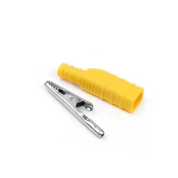 ETA3112A is a Universal multimeter probe adapter clip with 2mm socket silicone alligator clip, adapter alligator test clip, with sheath design, available in various colours. Designed to meet current electrical safety standards. Made of high-quality nickel-plated iron.